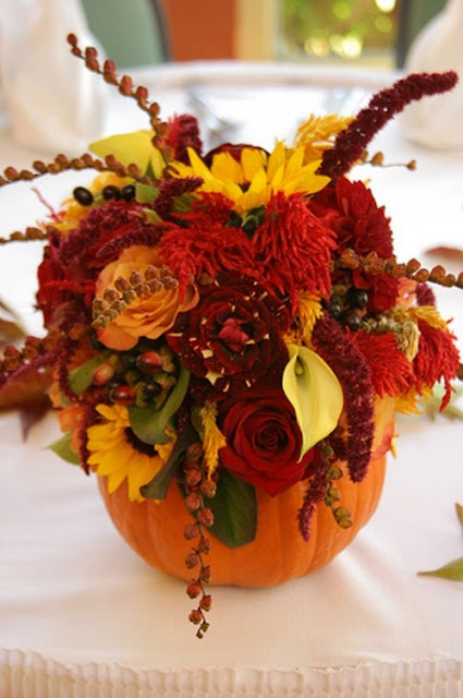 pumpkins and bright flowers! To decorate your weeding table use pine
