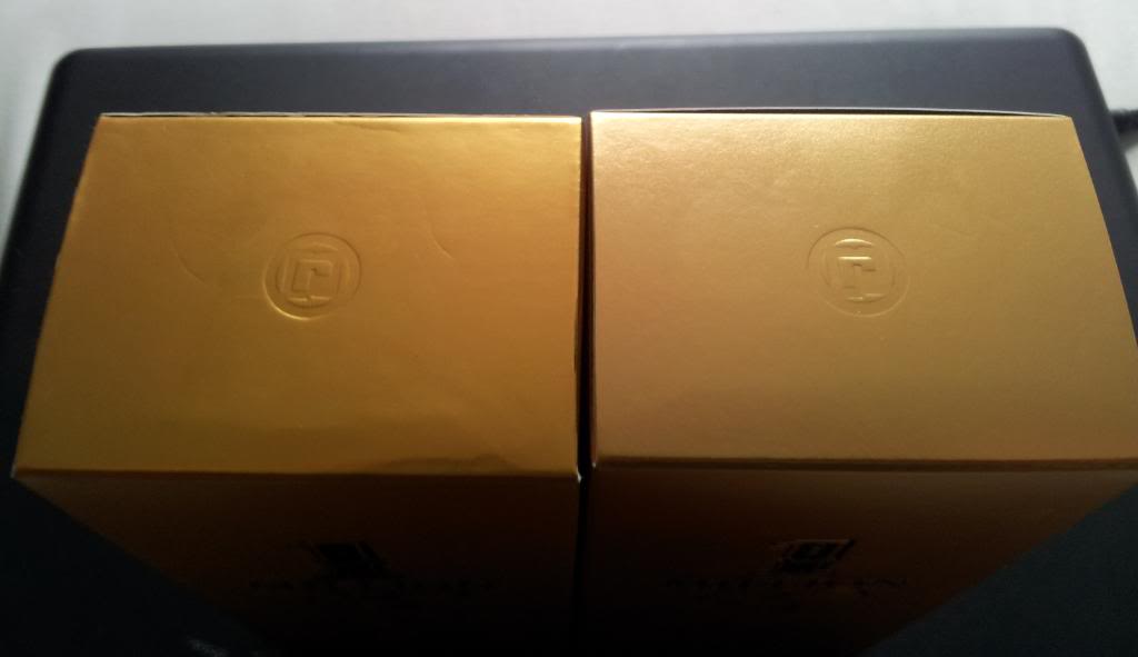 The backs (fake left - original right) once again different lay out but like I said I'm not sure if this is just an old reused box or a fake one!